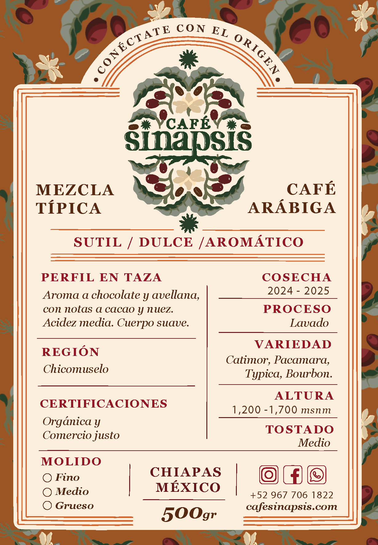 Café Sinapsis ofrece café orgánico de Chiapas, cultivado por familias campesinas con prácticas justas y sostenibles, resaltando calidad, sabor y compromiso social.